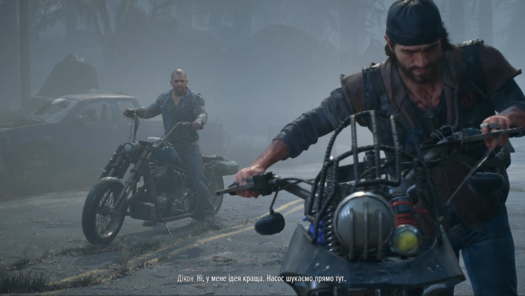 Напевно розробники хотіли, щоб наш байк був центровою механікою гри, однак окрім як для переміщень по локаціям він не використовується. Так на нього є багато покращень, що і збільшують його швидкість, об’єм паливного баку, тощо. Тим не менш на виконання абсолютної більшості задач він не впливає, і в самому геймплеї відіграє більш декоративну, а не реальну роль. Бо з нього навіть бандеросмузі в орду фриків не кинеш, а перестрілки – то виключно між мотоциклістами, або якогось вовка відігнати. Хоча визнаємо – на байку ганяти стильно. Хоч і дорого, бо бензину жере – наче М113 по лісосмузі.
