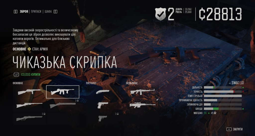 Особлива зброя. Оце дійсно прикольна тема. Тут нам на вибір доступне високоточне озброєння для знищення поодиноких, а часом і не дуже, ворогів – від смертоносного і абсолютно безшумного арбалету до снайперської гвинтівки 50-го калібру, що пробиває кількох ворогів одним пострілом. Котикам особливо подобалось брати цю монструозну гвинтівку і знущатись над ордами фріків з дальності, з якої ці орди нас не помічали, а просто вмирали.